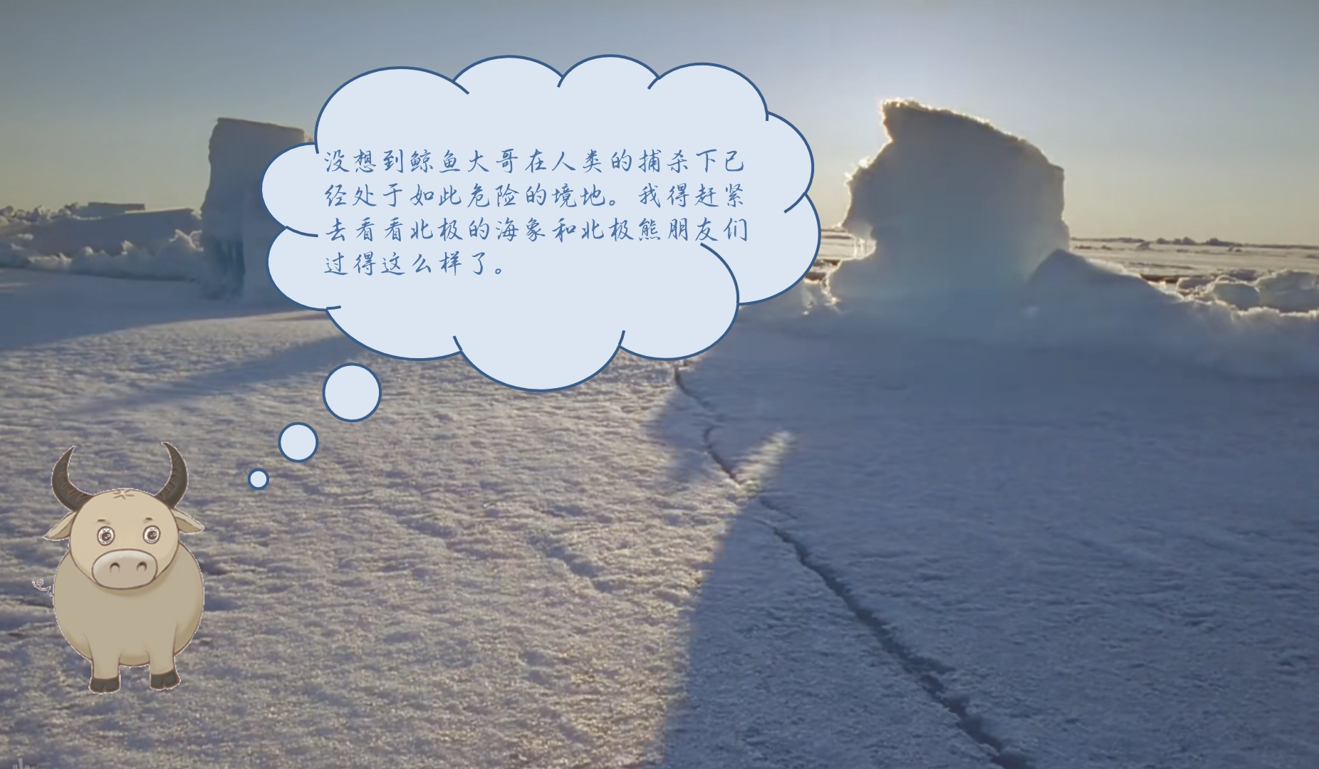 12月14日,小队召开第一次会议,团队成员结合自身特长、专业背景及学校特色,确定以用川农牛为原型创作的川牛牛在各大洲找朋友为故事主线,以在过程中发现环境破坏给生态带来的危害,给动物朋友们生存带来的困难为核心,穿插各大洲特色动物(如美洲狮、北极熊等)的科普,展开系列微课。
