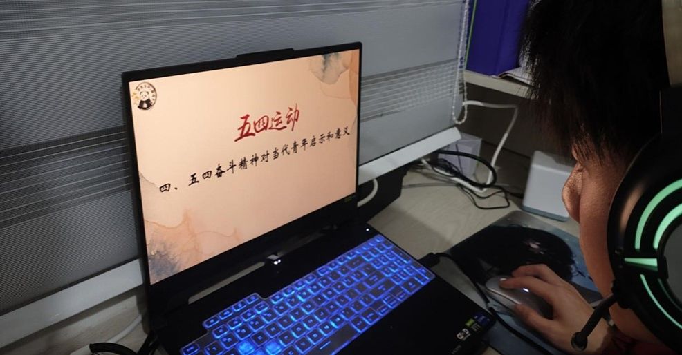 (图为支教团成员在制作第一期微课的PPT)