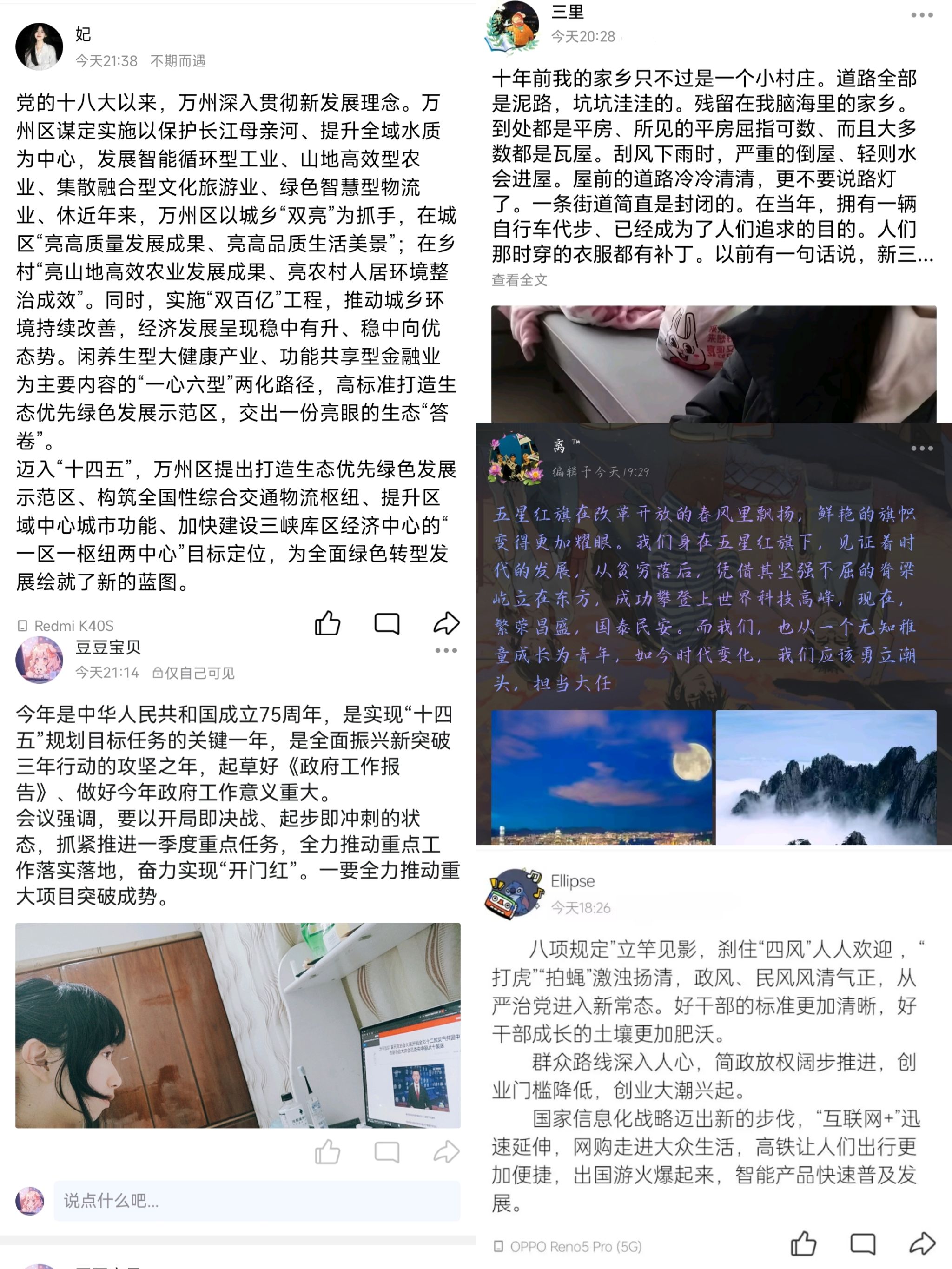 实践活动分为两个阶段,第一阶段的主要进行线上信息收集。通过整理党的十八大以来党和国家在经济建设、民主法治建设、思想文化建设、全面深化改革等方面所取得的重大进步和重大成就。1月30日至31日,成员们在网上查找展示家乡近几年变化的照片,观察自己家乡面貌、生活方式、交通方式的主要变化。