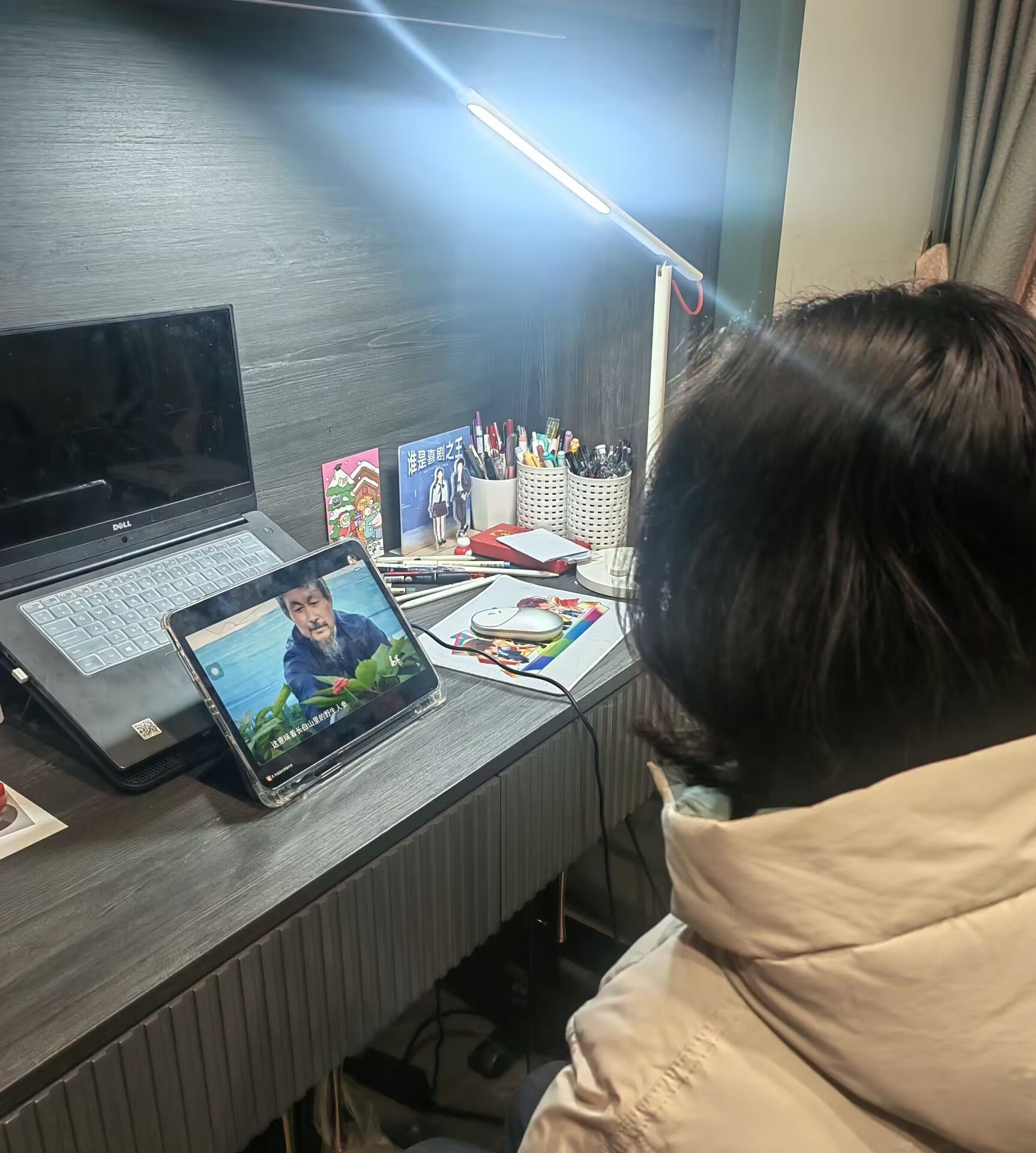 (图为团队成员观看纪录片时拍摄及纪录片图片)