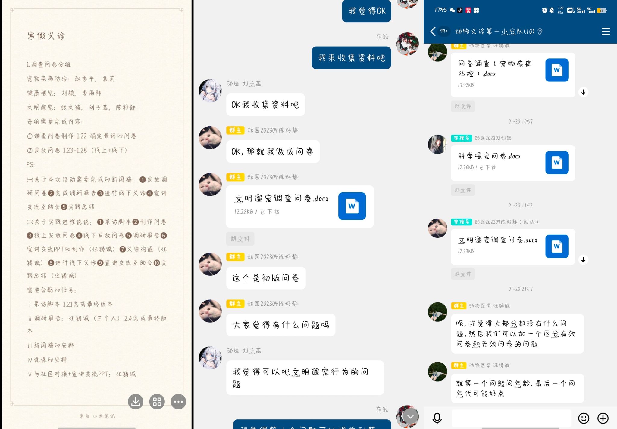 线上实践期间,团队成员与第二分队联合宣传,转发团队官方账号“宠爱计划”在小红书、抖音、快手等各大网络平台上发布的有关科学养宠的科普视频和文章,并撰写新闻报道。通过持续的宣传活动,提高了社会民众对正确养宠的认知,同时团队成员们也在过程中积累了更多的专业知识,拓展了专业深度,为日后的学习打下了基础。除线上实践,团队还积极联系学校周边社区,于2月19日在成都市温江区光华社区,联合冰球突破mg正规官网实志中心举行了线下宠物义诊活动。活动邀请了冰球突破mg正规官网教学动物医院的周紫峣医生以及研究生师兄师姐组成的专业义诊团队,为宠物提供常规体检和专业诊疗建议。团队成员为社区民众发放科普宣传手册,讲解科学养宠知识,并于现场观摩学习宠物诊疗理论和宠物体检基础手法,可谓收获满满。