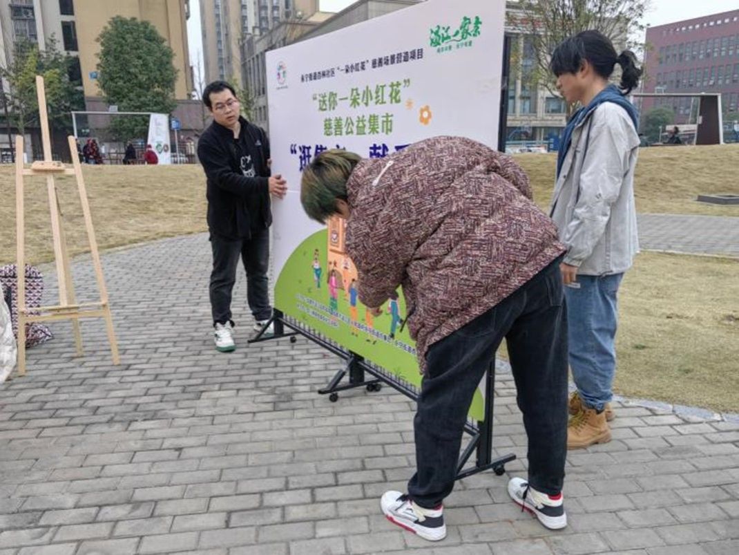3月9日早,来自冰球突破mg正规官网(以下简称川农大)动检202301班级的七位川农学子前往永宁街道杏林社区进行志愿服务活动,协助杏林社区“逛集市,献爱心”慈善义卖活动的顺利开展。本次志愿活动的目的在于以团支部为单位响应学雷锋志愿服务月“追‘锋’新青年,建功新时代”的实践口号,为社会基层服务、传递爱心、奉献川农学子的一份力量。
