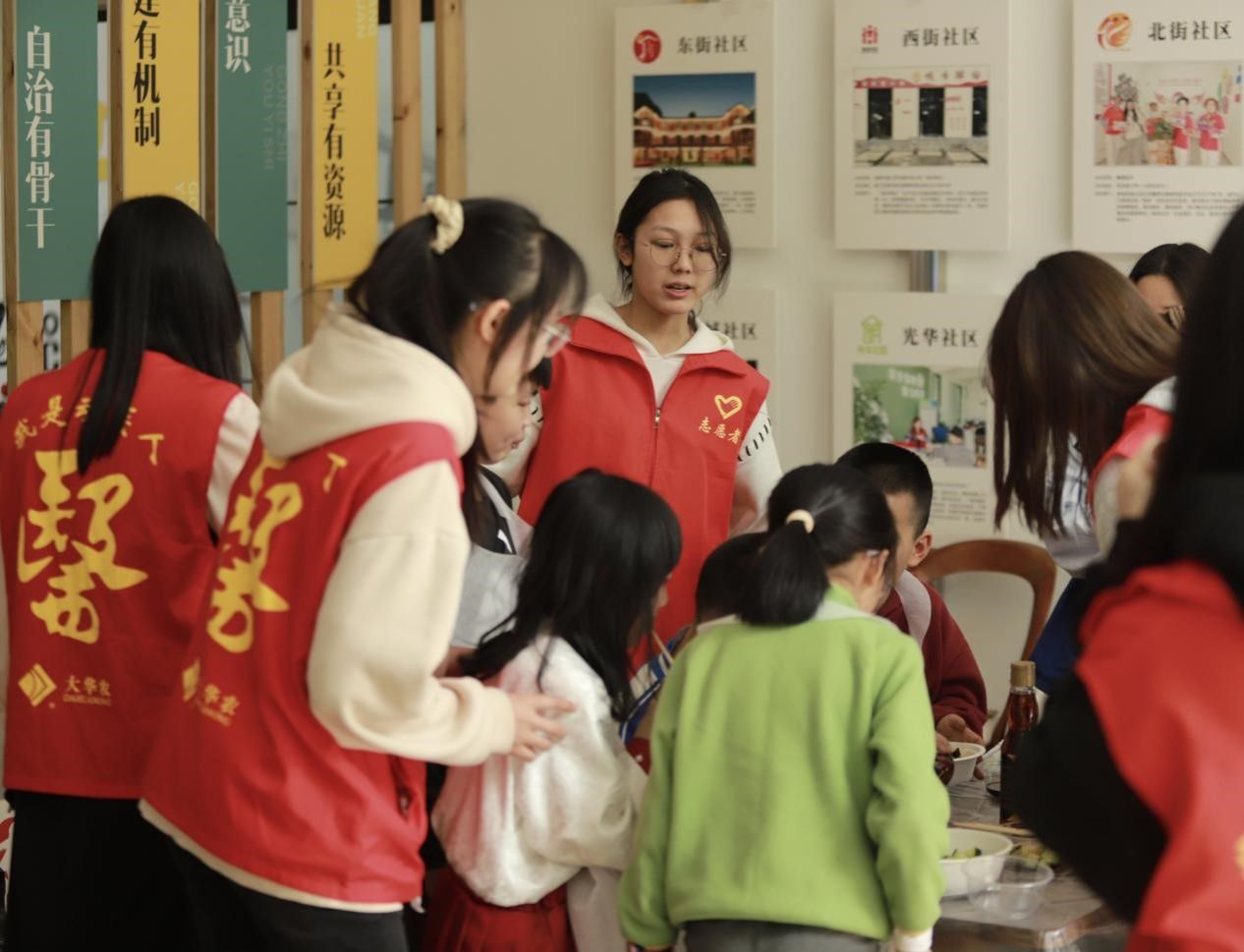 (图为志愿者教小朋友做菜)