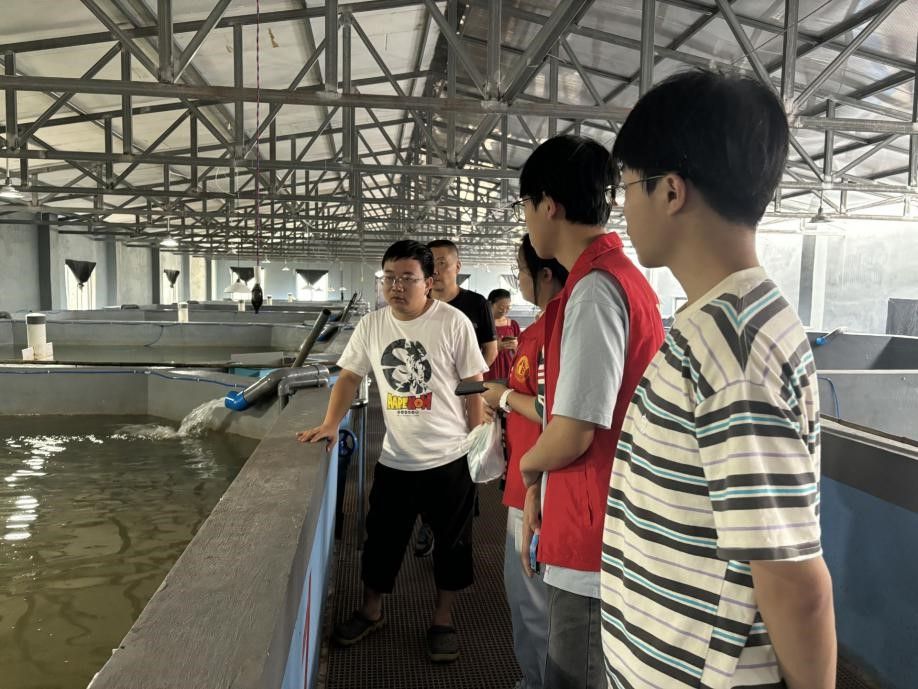 (图为团队成员参观两河口村冷鱼养殖基地)