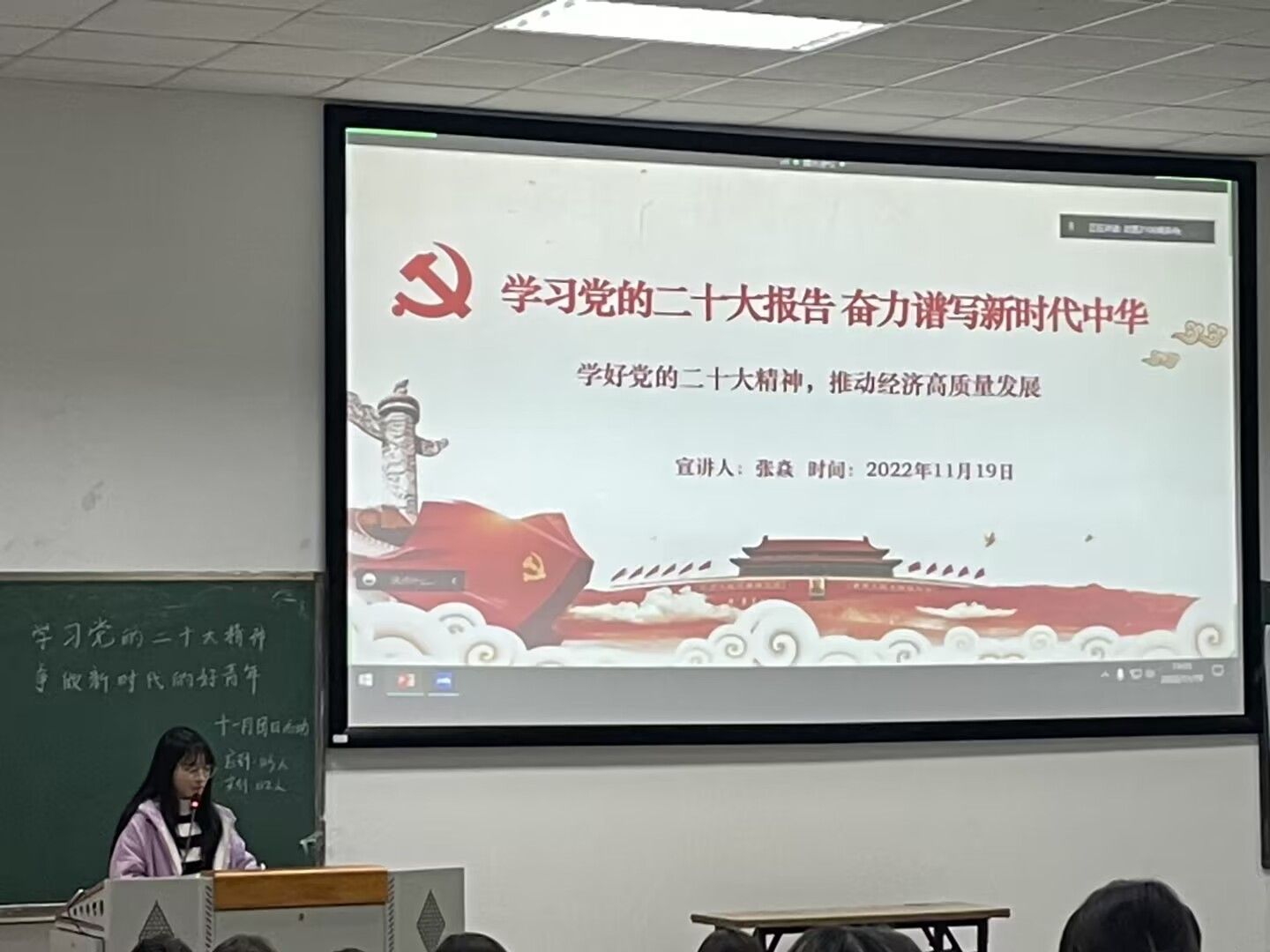 为深入学习贯彻党的二十大精神。11月19日,由动检2102、动检2202、茶学2101、动医2106四个团支部联办的 “学习党的二十大精神,争做新时代的好青年”十一月主题团日活动在4A-405教室圆满结束。