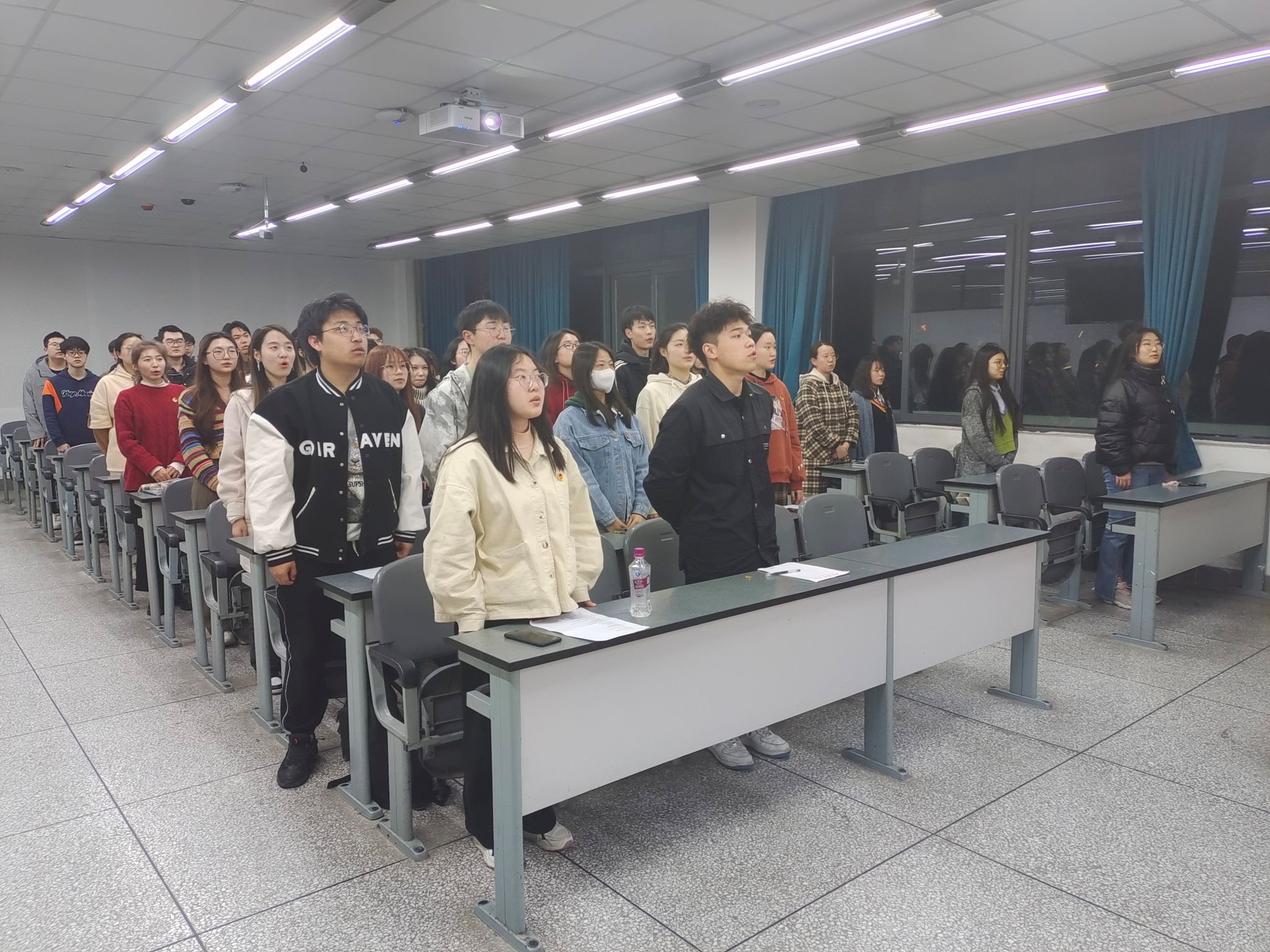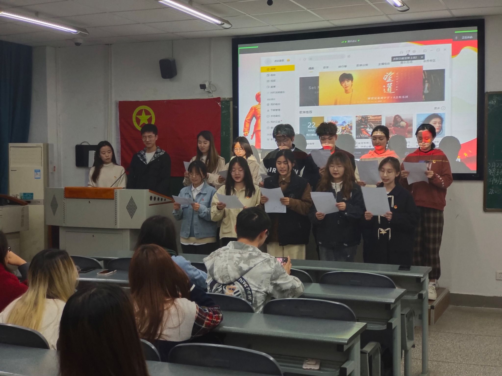 本次团日活动分为传承弘扬雷锋精神、争做“追锋”青年、实践归来话成长以及团结奋进新征程四个部分。伴随着嘹亮的团歌,本次团日活动正式拉开了序幕。