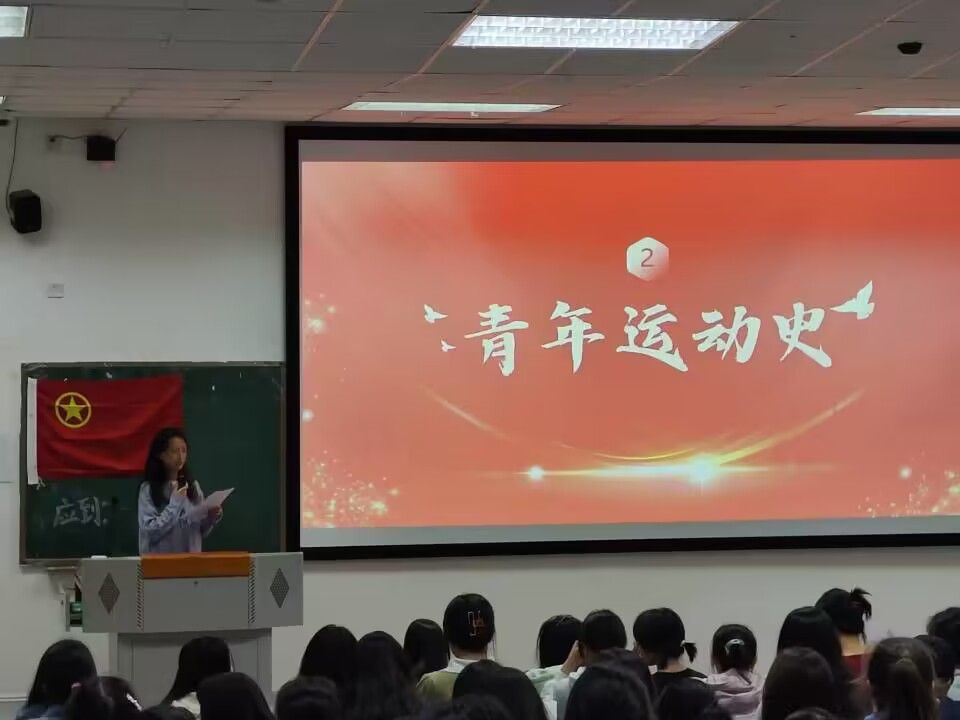 接下来的主题微团课议程由四个部分组成,第一部分为《青史-青课堂》视频观看,校团委老师曹小娇以百年党史、团史为脉络,聚焦青年运动史中的传奇故事,讲述了党领导中国青年运动的光辉成就,这些分享增强了支部成员们作为共青团员的光荣责任感,树立了以国家繁荣富强为己任的使命担当。第二部分是知识竞答环节,支部成员积极参与,应答如流,在轻松愉快的氛围中加深了对青团史知识的记忆,同时也使得支部成员们深刻了解到五四运动时期伟大的革命先烈在追求真理中传播新文化,勇于打破封建思想桎梏的革命斗争精神。第三部分是校青马班成员微团课分享,张焱就五四运动和五四精神与支部成员们共勉:“我们是什么样子,中国就是什么样子”。第四部分是“国旗下的演讲,我和团期合个影”视频展示,视频中支部成员们朝气蓬勃,青春向上,将炙热的爱国情怀化作青春的信仰之光,以赤诚之心为挚爱的共青团献上青春贺礼。