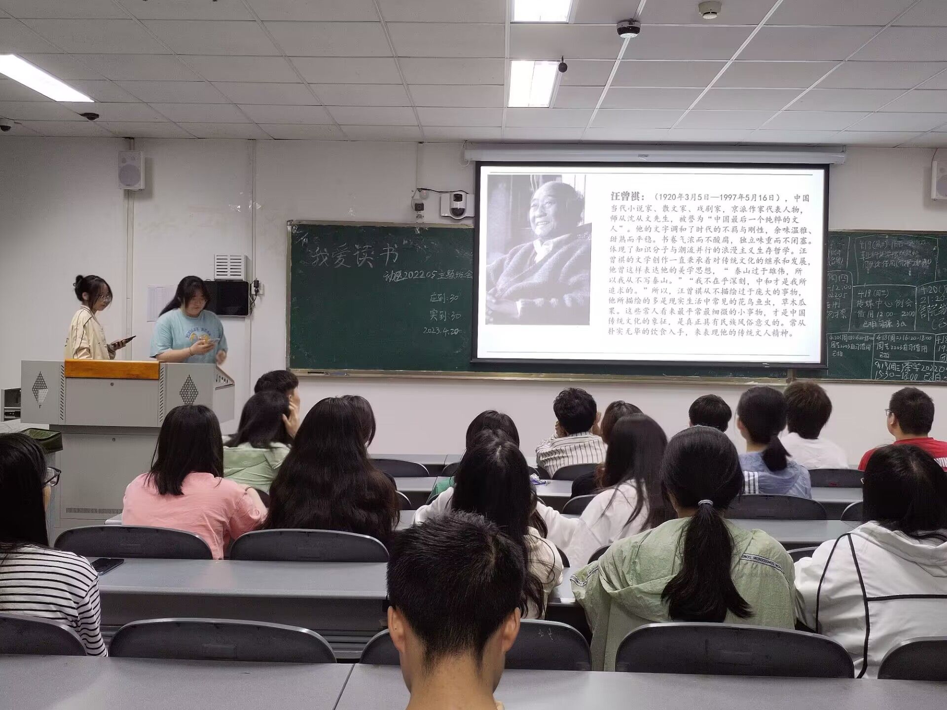 最后的环节则由何俐香等五人代表各小组进行读书分享。一组代表何俐香分享了东野圭吾的《解忧杂货店》。在何俐香的介绍下,小班学生对东野圭吾有了简单的认识,并且对《解忧杂货店》这本用一则则小故事串联的书有了热切的阅读兴趣,希望从每个小故事中得到治愈。而后,黄成悦、李芝悦两位发言人共同推荐了汪曾祺的《人间草木》,不仅介绍了作家汪曾祺,还选出几段描写和小班同学共同品味,让小班成员都感受到了葡萄月令的璀璨琳琅与绣球花充足而又极能自制的生命力。学生杨瑞则分享了《挪威的森林》,提醒同学们要学会应对孤独、缓解孤独,班主任夏静也分享了自己留学时应对孤独的故事,参会者都聚精会神的感受身在异国的孤独心境。接着由杨佳辉代表他的小组分享了《意林》,与小班成员一同回顾了曾经那些让人等不及的栏目,并用《意林》中细致的描写让与会者再次被这本杂志吸引,纷纷说出自己曾经最爱的栏目。最后,高梦哲分享了《中国共产党简史》,表明阅读《中国共产党简史》在学习党史国情的同时可以更好地了解当今时代的国际形势。班主任夏静也鼓励全体成员积极前往各地博物馆学习,有助于了解历史的厚重。