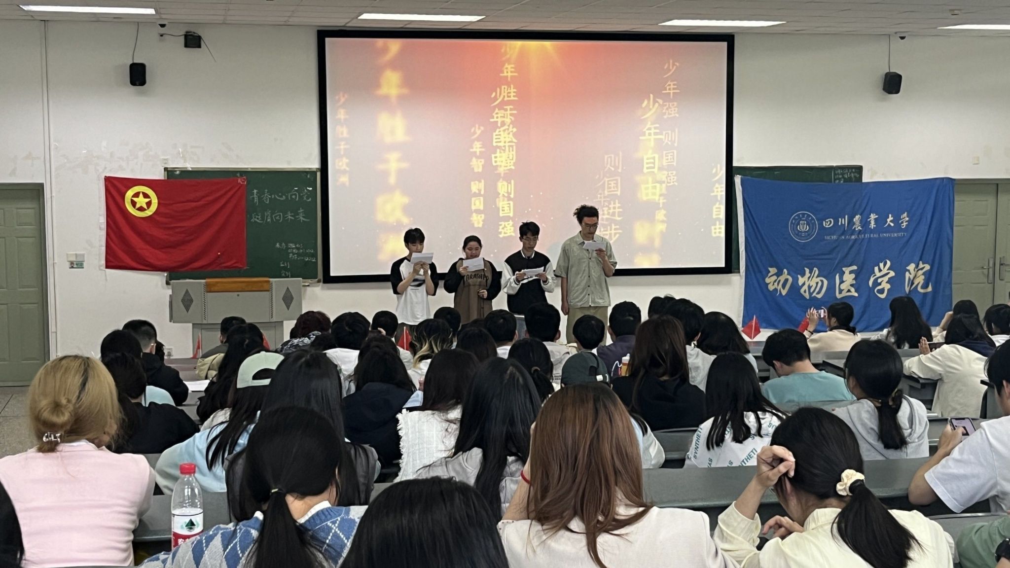 为持续深化学习贯彻习近平总书记关于青年工作的重要思想,引导青年学生深刻感悟党领导中国青年运动的光辉历程,在广大青年群体中弘扬好五四精神,厚植川农青年爱党爱国情怀,动检202101,动检202102,动医202105,药学202201,药学202202五个团支部以纪念五四运动104周年为契机,于4月25日下午四点在四教A206顺利联合举办了以“青春心向党,挺膺向未来”为主题的班团活动。