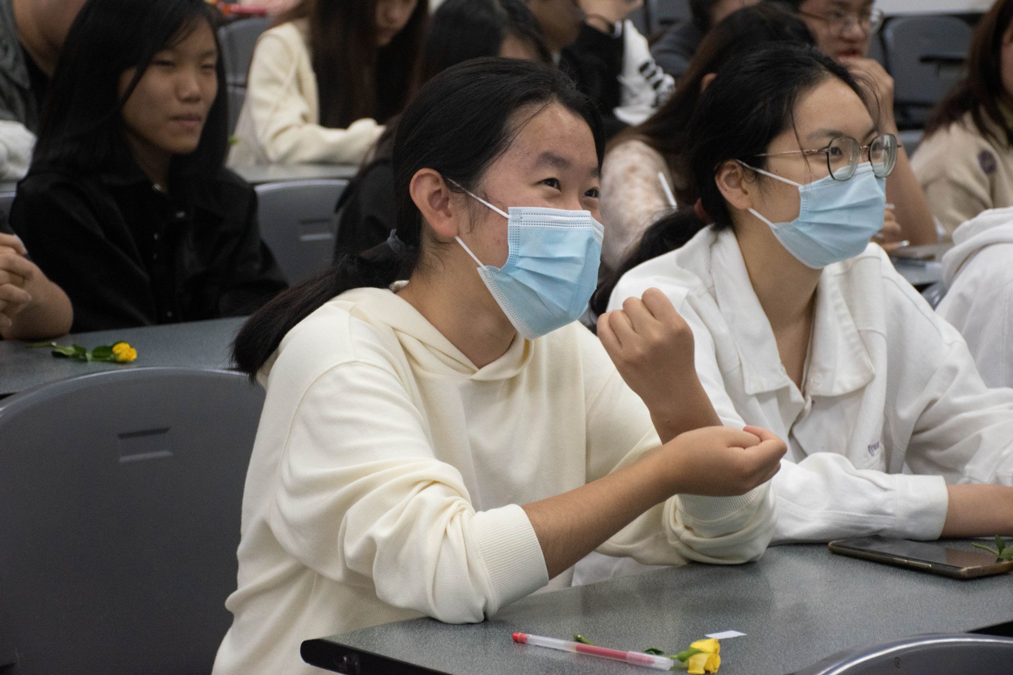 “迈入教室的那一刻,我听到了一首很好听的轻音乐,顿时感觉身体不由自主地放松了下来。座位上不仅有醒目的节气座位牌,还有一朵很可爱的小花,看到这些时我眼前一亮。”活动参与者史婧竹回忆此次活动时说到。尽管参加活动的同学看到这些都很激动,但仍然有序地抽选节气卡片,并按照对应的座位落座,现场井然有序。