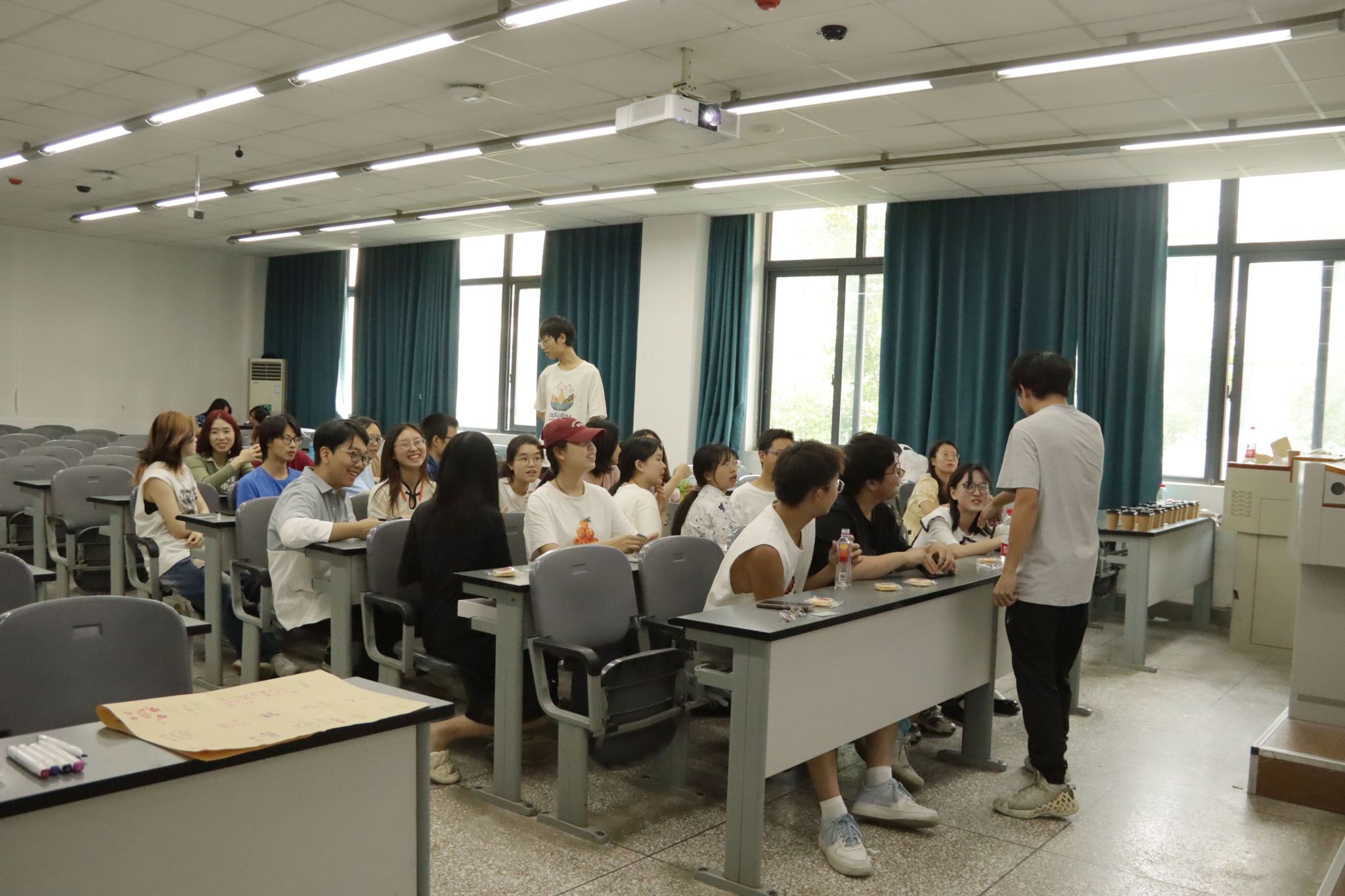 活动开始之前,马羽彤组织小班全体学生在卡纸上画上属于自己的笑脸来进行签到,这种特别的签到方式激发了小班全体成员的热情。签到结束,成员们根据手中抽取的刮刮乐分为五组,并分区域落座。接着汪思仪向成员们讲述活动主题与目的,并宣布活动正式开始。