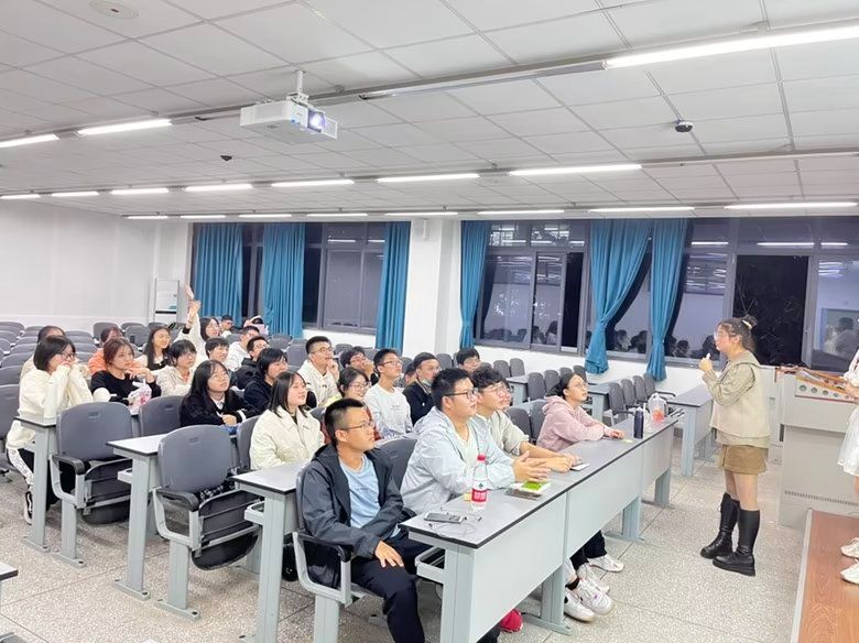 为了让同学们快速融入课堂,主持人冯潇带领同学们玩起了“关键词讲故事”的热身小游戏。根据主持人提出的关键词,每位同学都开动脑筋,发挥自己的想象力,将看似毫无关联的词语连结成一个又一个生动幽默的小故事,让其在愉快的游戏中中拉近了关系。