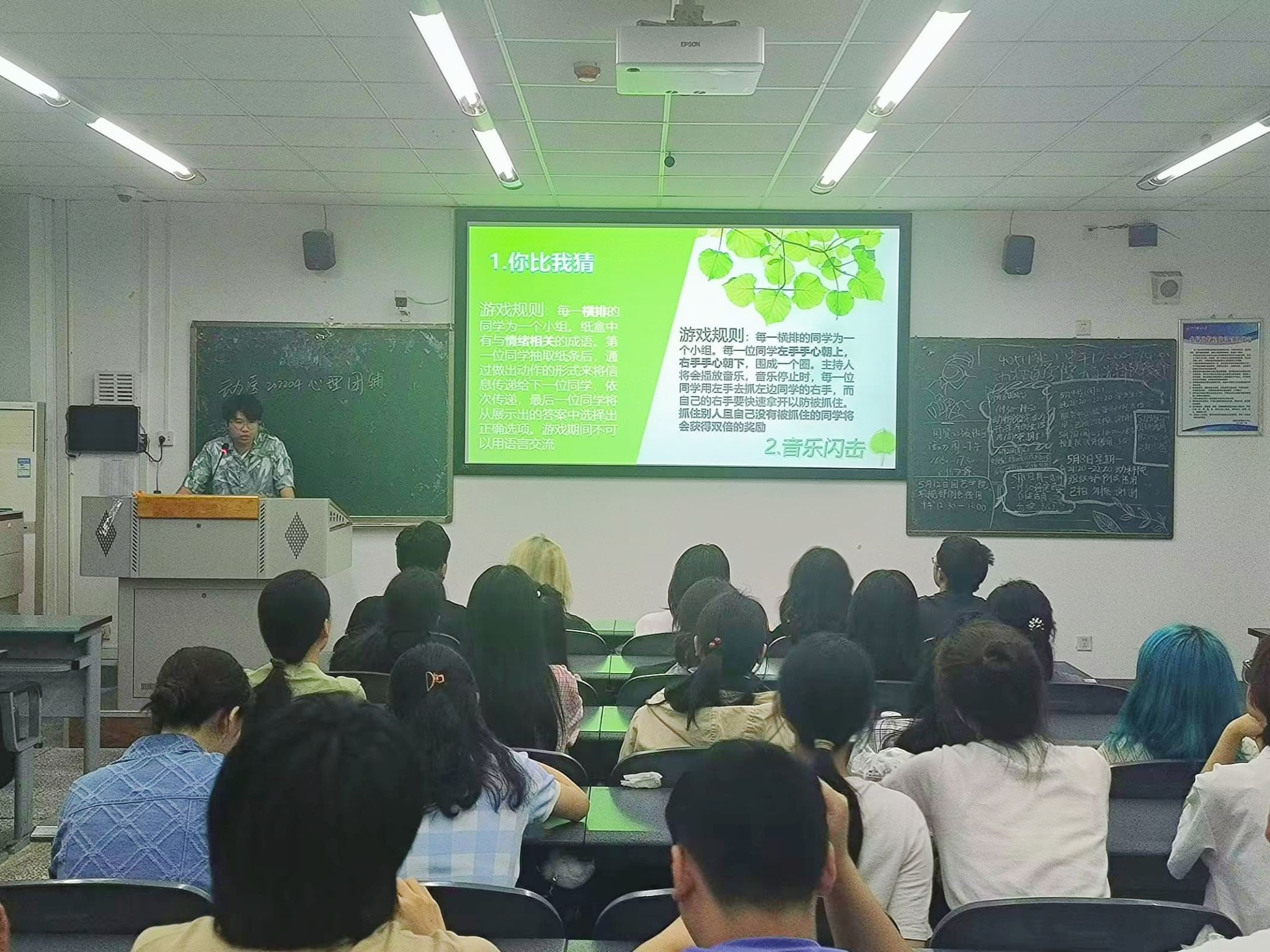本活动穿插了晕眩棒棒糖、你比我猜和音乐闪击三个轻松有趣的小游戏。随着第一个破冰小游戏——晕眩棒棒糖的顺利开展,全场气氛逐渐活络起来。在经过一场有趣的心理小测试后,班级成员们对于接下来的环节也是更加地期待。班级成员在“扫除阴霾,做回自己”的这一环节中,以小组为单位进行了“你比我猜”和“音乐闪击”的比拼。在这个环节中,成员们充分享受了游戏的快乐,也和其他成员有了更多的交流和了解。