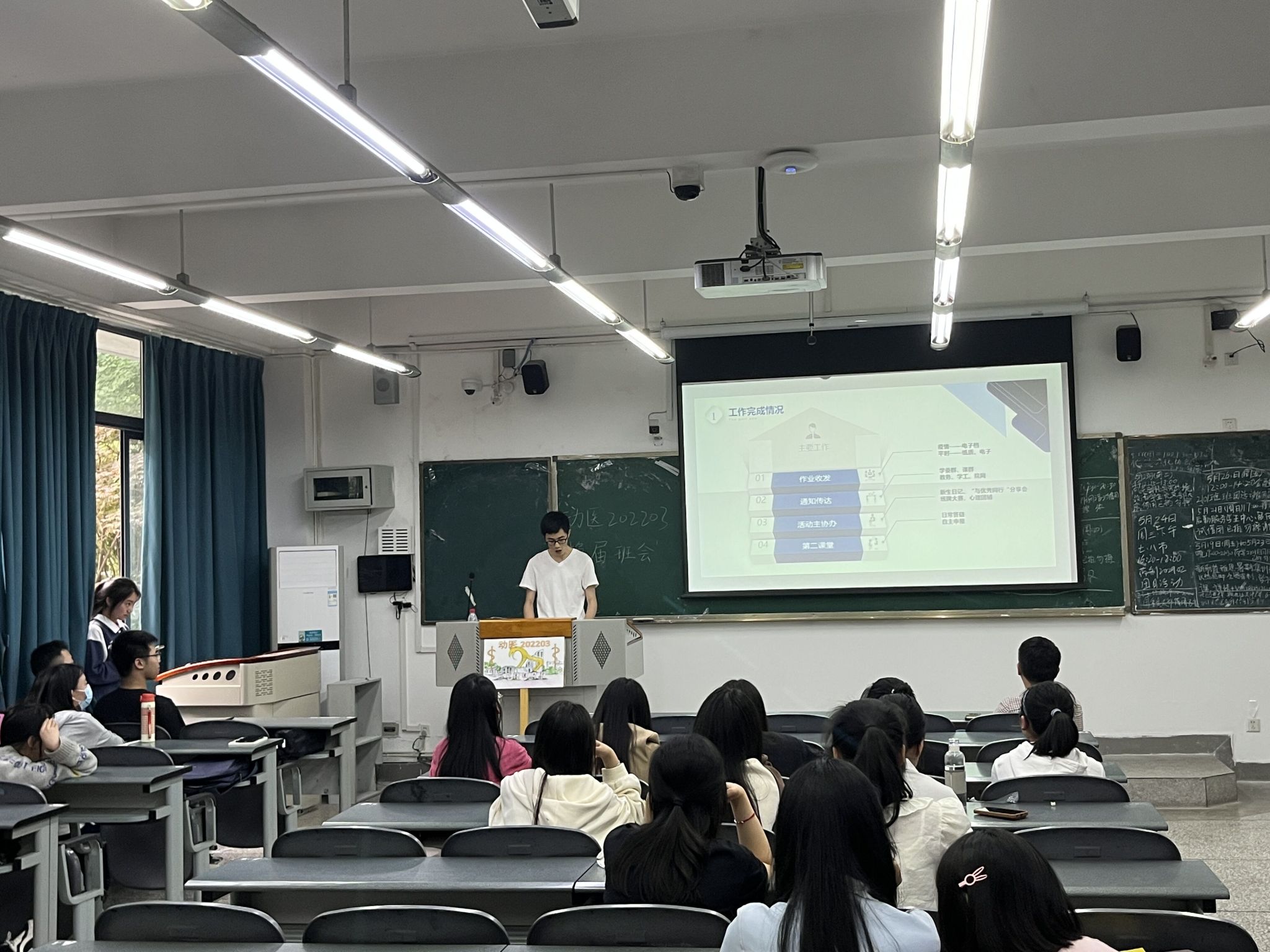 活动于5月25日下午4时20分准时开始。首先进行的是班级成长主题报告会,主要内容为在任班委的工作总结和新任班委的选举,组织委员汪巧月为主持人。班长曹一珂,团支书徐奕阳,学习委员徐熙衡,组织委员汪巧月,宣传委员杨依一,体育委员喻琪媛,心理委员王俊锟依次进行述职报告,对上一年的学习及工作做出总结。各班委都对小班目前获得的成绩(包括星级班级一等奖,小班班牌设计大赛一等奖等)和小班建设现存的问题及解决方式给出了自己的理解,鼓励班级成员积极交流,全面促进班集体共同成长。除此以外,班委对自己的工作内容做出具体介绍,并自述工作以来的成就与不足,有助于小班成员理解班委工作,加深相互了解程度。工作总结结束,小班成员反响热烈,班主任马晓平也给予几位班委较高评价,并指出了小班的努力方向和前进目标。