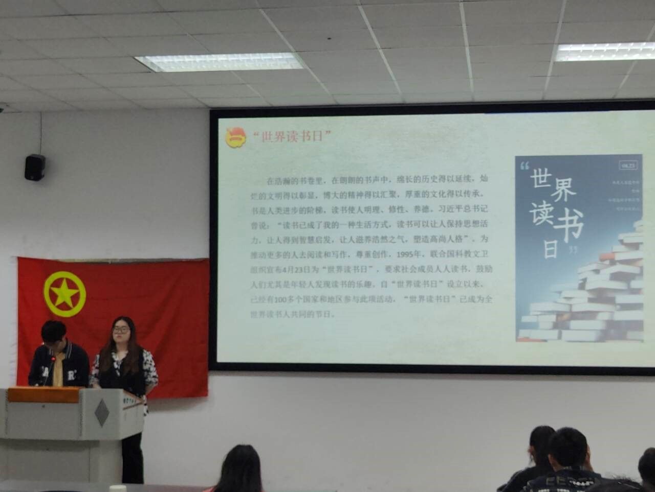 在“共建书香校园,阅读点亮人生”环节,肖悦详细介绍了世界读书日的由来。“世界读书日”已成为全世界读书人共同的节日。以“世界读书日”为契机,支部成员积极学习了习近平总书记的重要著作,阅读了《习近平谈治国理政》《习近平与大学生朋友们》《习近平的七年知青岁月》等系列书籍并积极分享了心得体会,在阅读中感受革命的力量,在思考中坚定信仰的方向。