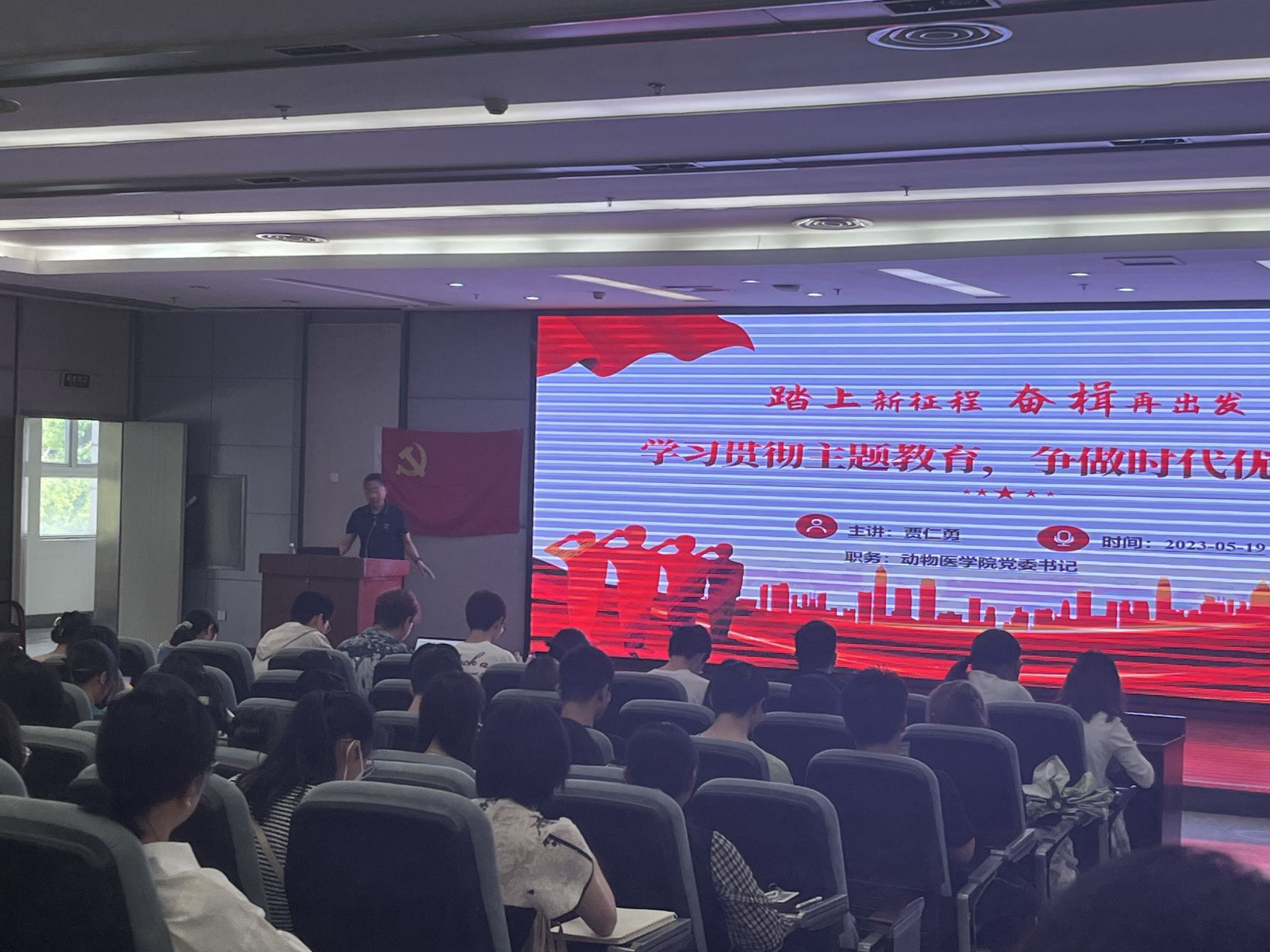 5月19日下午,冰球突破mg正规官网党委在图书馆报告厅开展“学习贯彻主题教育,争做时代优秀党员”主题教育讲座,学院党委书记贾仁勇作为主讲,学院第93期、94期入党积极分子参加学习培训。