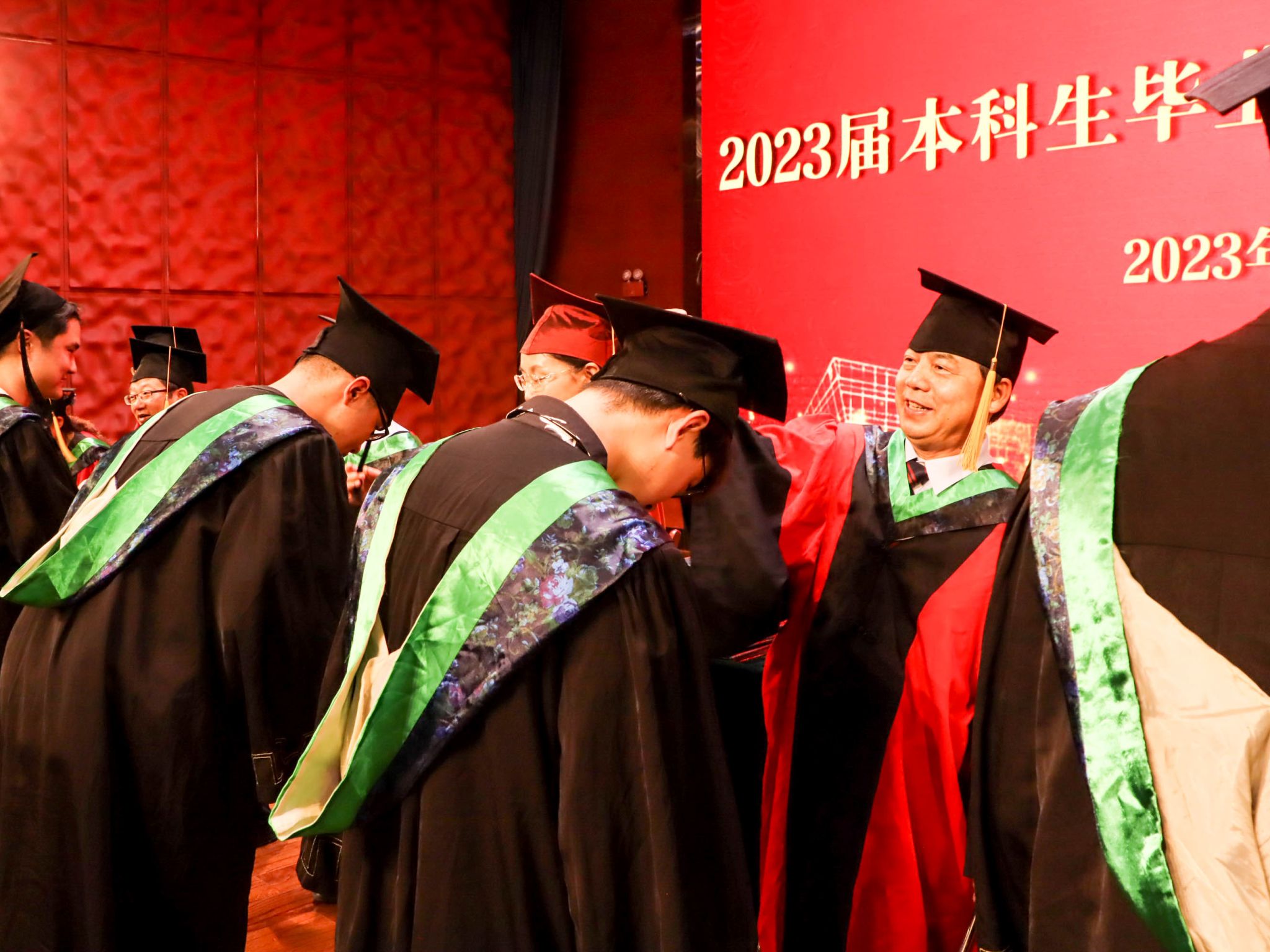 典礼迎来高潮,程安春宣读校学位评定委员会关于授予学士学位的决议,并由副院长左之才教授宣读各专业授位学生名单,毕业生们接连上台。在热烈掌声中,现场领导为毕业生拨穗,象征毕业生们已学有所成,可以展翅高飞,接着颁发荣誉证书并合影留念。授位仪式结束,典礼在“歌唱祖国”的歌声中迎来句号。