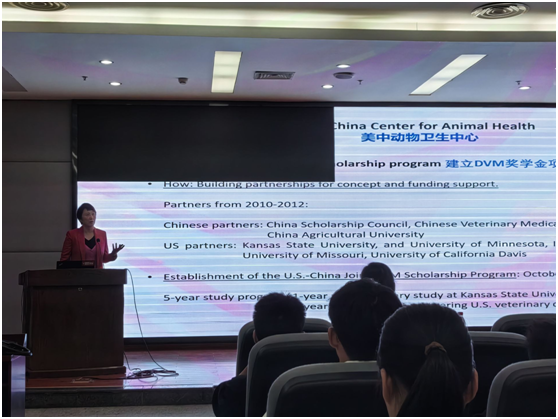 为进一步提升学院国际化合作办学水平,提升学生国际视野,10月10日上午,美国堪萨斯州立大学美中动物卫生中心王蕾博士应邀来校访问交流,并在图书馆二楼报告厅就中美联合培养执业兽医博士项目进行了宣讲。宣讲会由冰球突破mg正规官网院长陈舜教授主持,近200名动医师生聆听了报告。