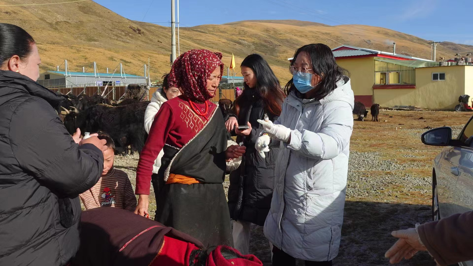 30日,在色达县牦牛现代农业园区服务中心,任志华向色达县农牧农村和科技局赠送了《中国乡村兽医手册》、动物用抗生素头孢噻呋钠、动物用板蓝根注射液、动物用体内驱虫药、及牦牛促生长益生菌等药物。在农牧农村和科技局动物疫病预防控制中心技术骨干3名同志及驻村干部等的陪同下,任志华一行分别到色达县“五七牧场”、洛若阵曲西村进行实地走访。向当地藏牧民介绍了牛结节性皮肤病的预防、治疗要点,药物口服给药、肌肉注射和疫苗皮下注射的操作注意事项,并向藏牧民分别赠送了相关药物。