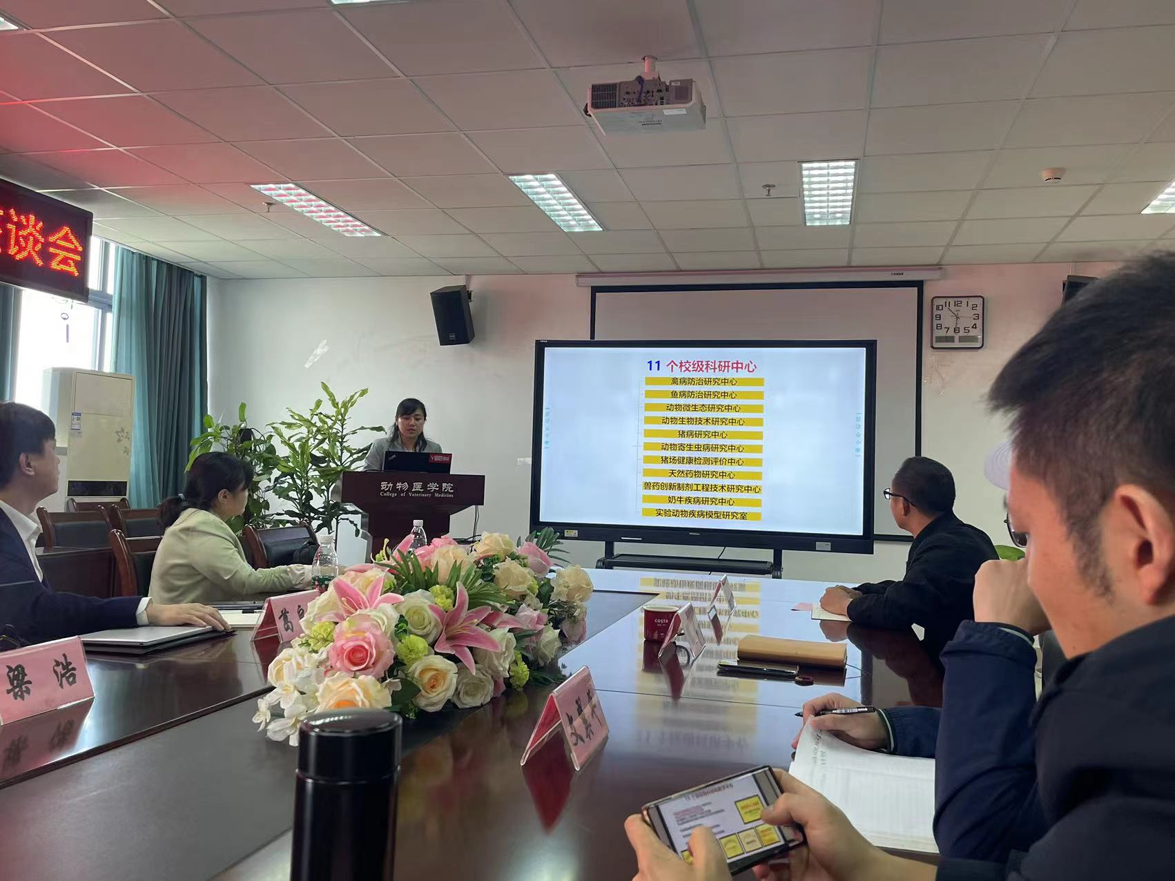 陈舜代表学院对国家生猪技术创新中心一行表示热烈的欢迎,并对学校和学院办学历史、专业设置、学科排名、人才培养、科研平台建设等作了介绍。文翼平老师介绍了猪病研究中心基本情况、团队构成、科学研究、社会服务等。龙科任博士对动物科技学院动物遗传研究中心基本情况进行了介绍。