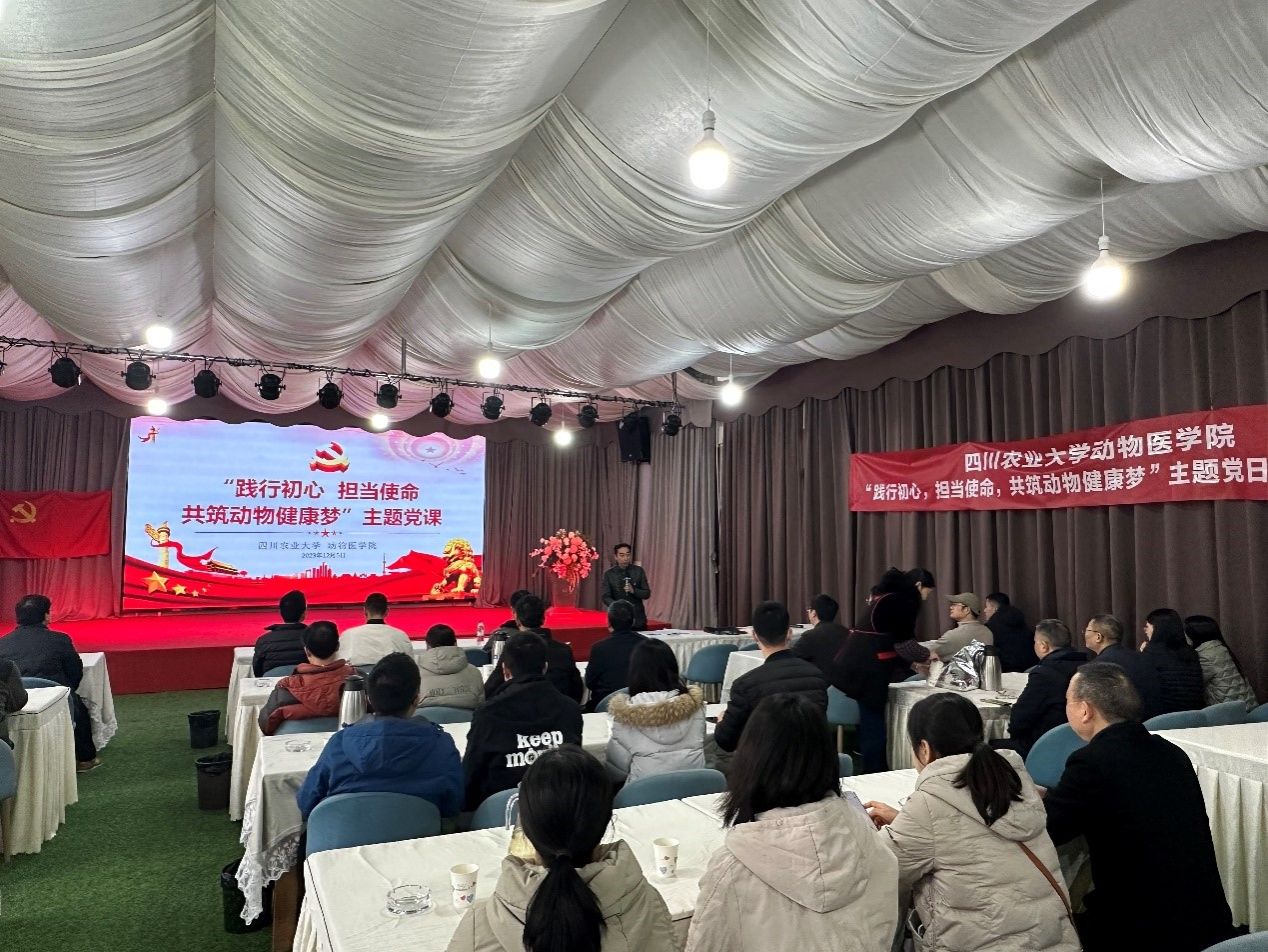 在党日活动学习会上,学院党委书记贾仁勇以“践行初心、担当使命,共筑动物健康梦”为主题为全体教师讲授微党课。他强调,全体教职工要深入学习贯彻习近平新时代中国特色社会主义思想主题教育,拥护中国共产党的领导,贯彻党的教育方针,落实立德树人根本任务,遵循教育规律和学生成长规律,因材施教,教学相长。同时,他向全体教职工提出加强对意识形态工作阵地建设和管理的具体要求,对教师管理、学术行为、科研活动、宣传阵地管理等方面进行严格把关和监管。