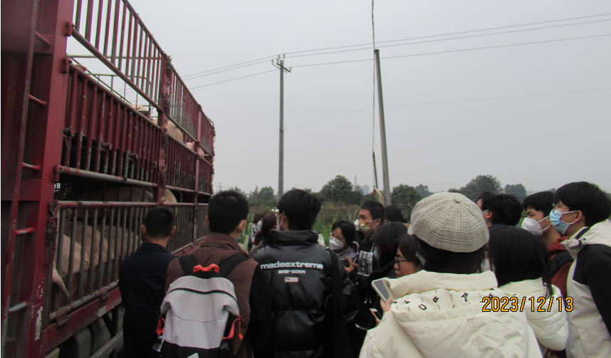参观过程中,三位专业教师结合进厂检查登记、监督查验、同步检验检疫现场情景对生猪宰前检疫、同步检疫理论和技术等知识进行了系统讲授。金忠食品副总经理刘力、行政主管李星细致地讲解了企业生猪屠宰加工流程和产品品质检验等一线生产相关专业知识和检验原理。参观后在金忠食品党员活动室开展了参观学习交流会,会上,金忠食品王静老师介绍了公司的发展概况、企业文化理念和未来发展战略,动检师生与企业负责人、驻场官方兽医进行了深入交流,气氛热烈融洽。最后三位专业教师对邛崃市农业农村局官方兽医康喆恒、岳晓荣和张秀云给予指导以及金忠食品企业负责人给予的支持表示了一一感谢,并指出一定要重视和发挥好实习基地益教益学理论联系实践的作用,不断加强和拓展基地建设,通过“课外课堂”让学生知农爱农,激发专业学习兴趣和能力。