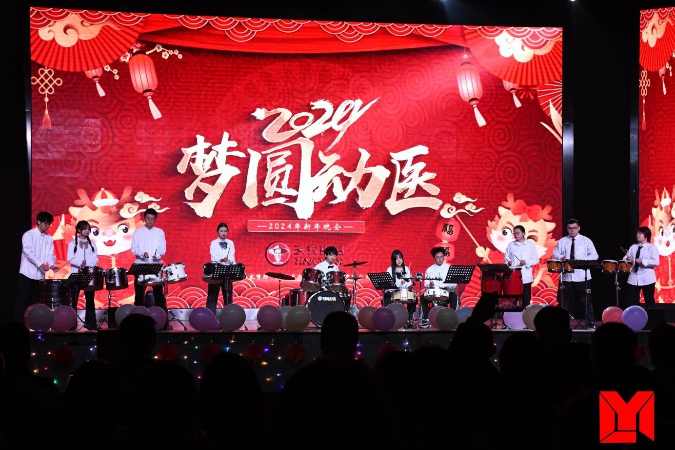拉开晚会帷幕的《节奏敲击》以激昂的鼓声引爆全场热情,随后陈舜院长慷慨陈词:“2023年是我们创造‘第一’、‘唯一’、‘又一’成就的一年,2024年,我们动医学子将砥砺前行,绽放新的光芒!”肖驰总监也激动地祝福:“冰球突破mg正规官网是最佳平台,与动医学院携手合作必将双赢!祝愿全体师生2024年更加辉煌!”