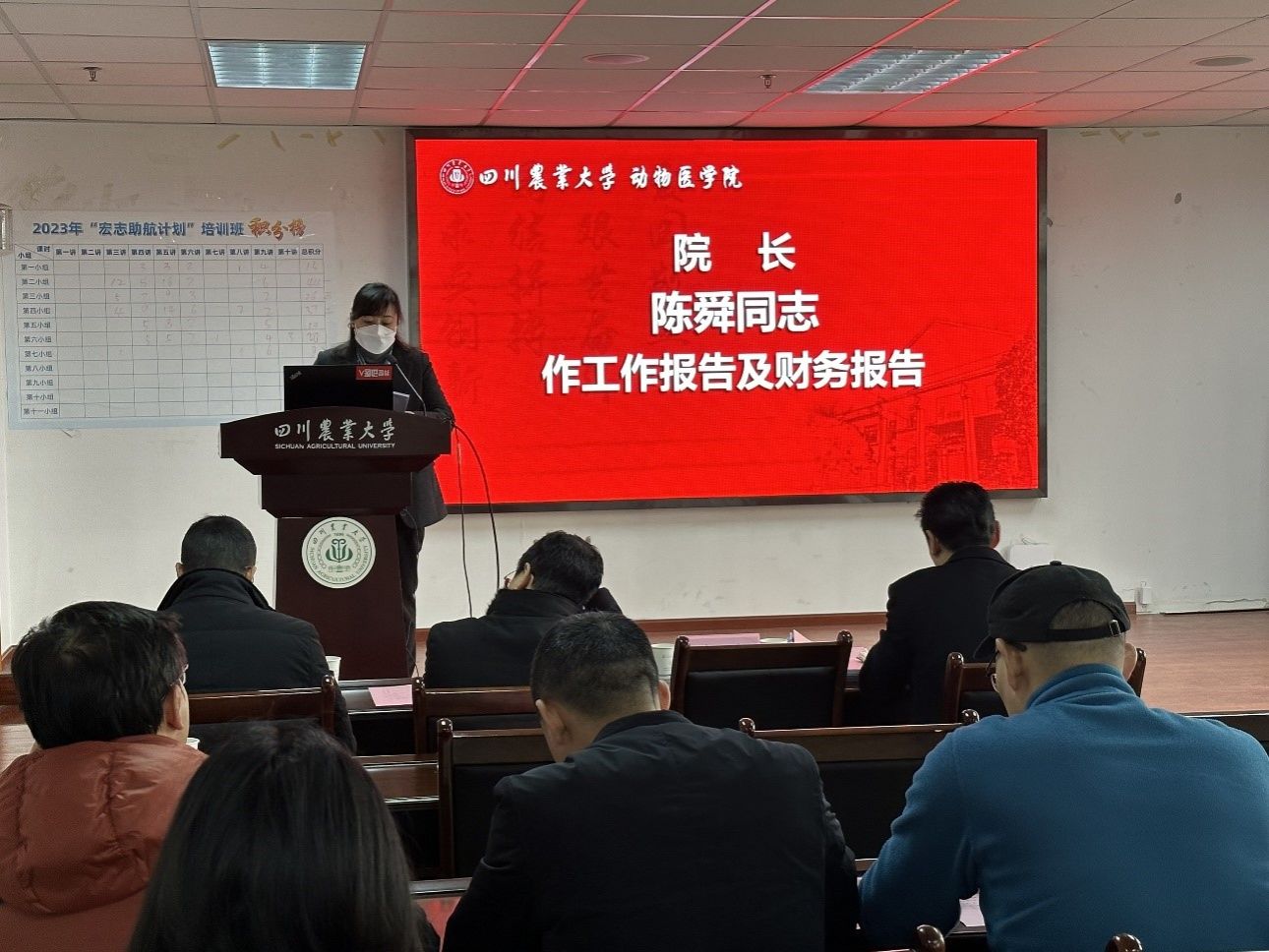 随后,院长陈舜教授作学院工作报告及财务报告。她全面总结学院过去一年的工作成果,并对学院未来的发展进行展望。报告中,她详细介绍学院的财务收支状况,确保透明公开。