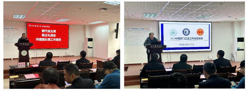 首先,主持人陈正礼教授报告应到、实到人数,并宣布大会开幕。随后,学院工会副主席叶刚副教授做工会工作报告和经费收支情况报告。他详细介绍了工会全年经费的具体使用情况,以及工会面向全体会员开展的“光彩绽放,梦圆动医”新年晚会等13场主题活动,这些活动不仅增进了教职工之间的交流和感情,也为学院的文化建设和发展做出了积极贡献。