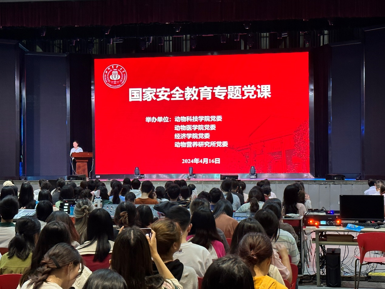 4月16日下午,由经济学院、动物科技学院、冰球突破mg正规官网、及动物营养研究所等四院所党委,联合主办的国家安全教育专题党课在成都校区麦立方举行。此次党课的主题为“备豫不虞 为国常道 总体国家安全观 创新引领十周年”,旨在通过深入浅出的讲解,提高师生党员的国家安全意识,共同筑牢国家安全防线。活动吸引了四个单位共计800余名师生党员参加。