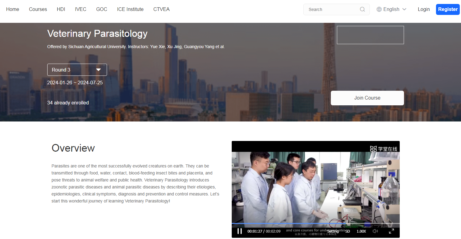 在教育部在线教育研究中心成立十周年之际,冰球突破mg正规官网谢跃教授主讲的《Veterinary Parasitology》课程,作为全校唯一入选项目,也是全国唯一入选的兽医学方向课程,成功登陆学堂在线国际版平台,成功出海至泰国,标志着我校兽医学科在国际化教育领域迈出了坚实的步伐。