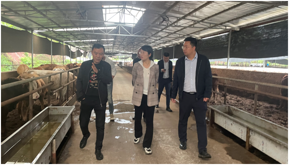 近日,四川肉牛创新团队肉牛主要疾病防控技术研究与集成应用岗位专家成员、四川省科技下乡万里行肉牛产业75团专家成员、冰球突破mg正规官网副教授王娅,冰球突破mg正规官网农发院副院长胡剑锋、冰球突破mg正规官网园艺学院廖玲一行随富顺县组织部副部长黄声剑、富顺县农业农村局长邱明贵、富顺县童寺镇书记曾平等一行的陪同下前往自贡市富顺县童寺镇东禅村九组四川腾牛农业科技有限公司肉牛养殖基地开展技术服务指导工作。
