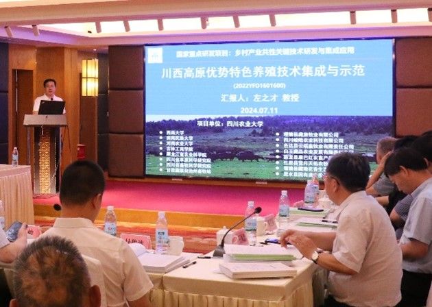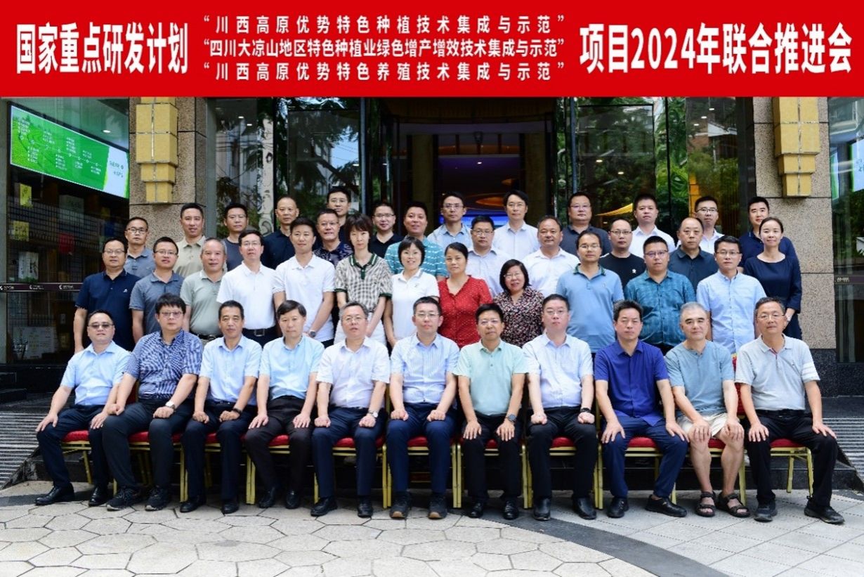 7月11日,由我校牵头的“十四五”国家重点研发计划“川西高原优势特色养殖技术集成与示范”和“四川大凉山地区特色种植业绿色增产增效技术集成与示范”以及四川省农业科学院牵头的“川西高原优势特色种植技术集成与示范”在成都广元宾馆成功召开2024年项目联合推进会。中国农村技术开发中心张辉副主任、产业科技处王峻处长、项目专员段悦明、杜昊澜,专项总体组专家王凤忠研究员、杨富裕教授,项目技术咨询专家庄严处长、张小艳高级会计师、淳泽研究员、向达兵教授、殷宏研究员、郭宪研究员,项目推荐单位领导四川省科技厅农村处董文刚副处长,我校科技处田孟良处长、杜俊波副处长,项目、课题负责人及项目团队成员共60余人参加会议,四川省农科院经济作物研究所党委书记张小军主持会议。