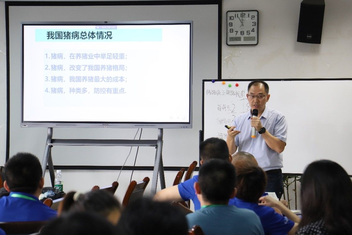 此次培训由宁波三生生物科技股份有限公司主办,成都易牧联创生物科技有限公司协办,冰球突破mg正规官网副院长左之才教授、猪病研究中心常务副主任黄小波教授、猪病研究中心骨干专家颜其贵教授、杜森焱教授、王一平教授、文翼平副教授、伍锐副教授、赵勤副教授、郑艺老师及40余家规模猪场的技术总监参会。