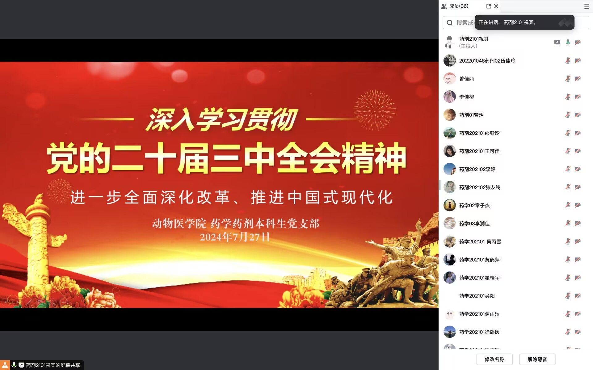 临床兽医系教工党支部书记沈留红也分享了学习心得,“他表示将把全会精神贯彻到教学工作中,培养更多具有社会责任感和实践能力的兽医人才。”