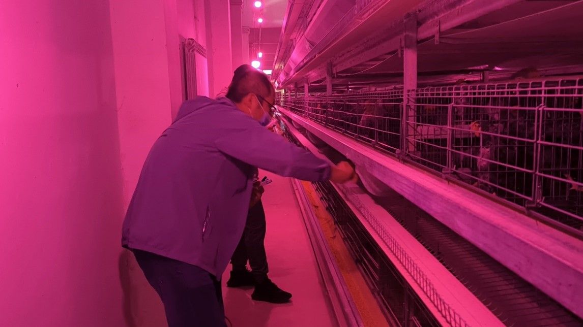 会后,舒刚副教授一行参观了山南贡桑禽业发展有限公司的雪域白鸡与青脚麻肉鸡养殖鸡舍,参观过程中,舒刚副教授详细了解了公司的养殖流程、鸡舍建设情况以及管理模式。结合品种特性及当地养殖情况,舒刚副教授就发酵床材料比例、智能环控设备的运用等技术点对藏鸡发酵床养殖模式提出了建议,旨在促进藏鸡高效健康绿色养殖。