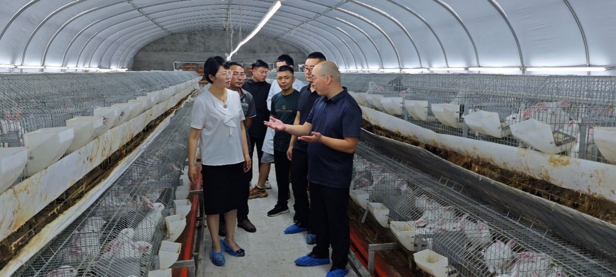 活动当天,王娅副教授及其学生团队准时抵达叁生现代农业有限责任公司。在短暂的交流后,他们进入公司的兔舍进行参观调研。在调研过程中,王娅副教授对兔舍现存的问题提出了中肯的意见和改进建议。针对近期雨季带来的兔舍湿度过高的引发的系列疾病问题,王娅副教授建议加大通风力度,保持地面干燥与洁净的方式来解决这一问题;同时,因雨季带来的应激反应继发部分兔感染真菌,王娅副教授提出待全群出栏后兔场使用烧碱和生石灰进行圈舍消杀,再配合戊二醛对兔舍进行消毒,养殖过程中在饲料中适量添加免疫增强剂,以此来预防系列疾病发生。