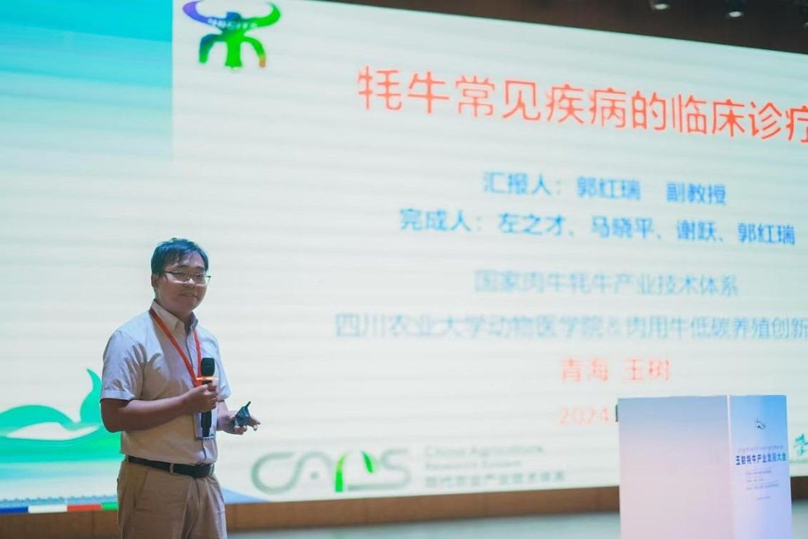(郭红瑞副教授做《牦牛常见疾病诊疗》报告)