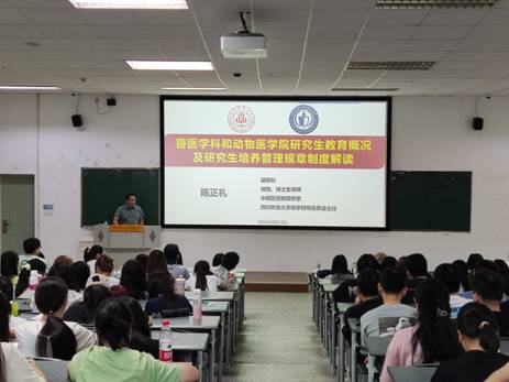2024年9月13日下午,冰球突破mg正规官网副院长、博士生导师陈正礼教授在成都校区4教A208为2024级研究生新生解读研究生管理各项规章制度,并讲解兽医学科发展历史(前景)与兽医学科学术文化。
