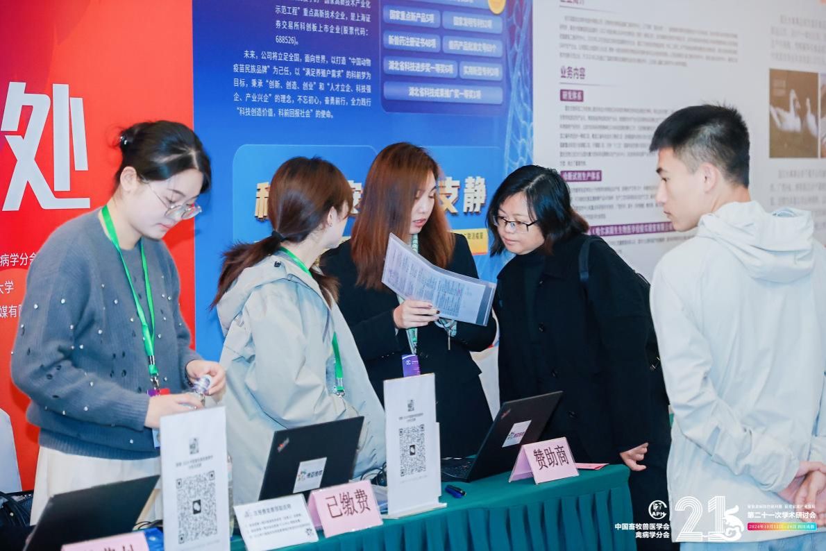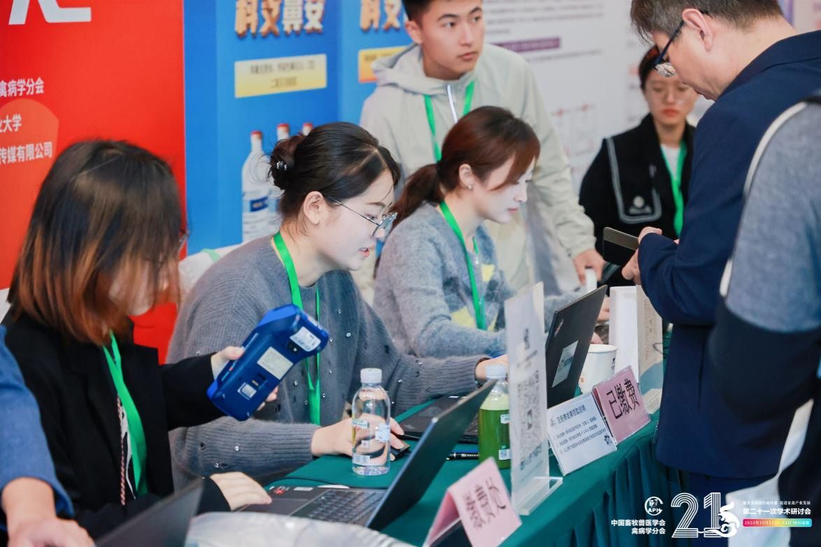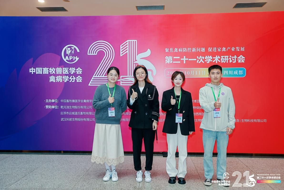 值得一提的是,王梦莹、胡涛、孙安阳和罗宁四位同学还全程参与了大会的志愿者服务,以热情周到的服务和积极向上的态度赢得了广泛赞誉。通过此次会议,他们不仅向业界充分展示了我校动医学子在禽病领域的最新研究成果和科研实力,还进一步拓宽了学术视野,增强了与业界同仁的交流与合作,为我校动医学子未来的学术研究和职业发展奠定了坚实基础。