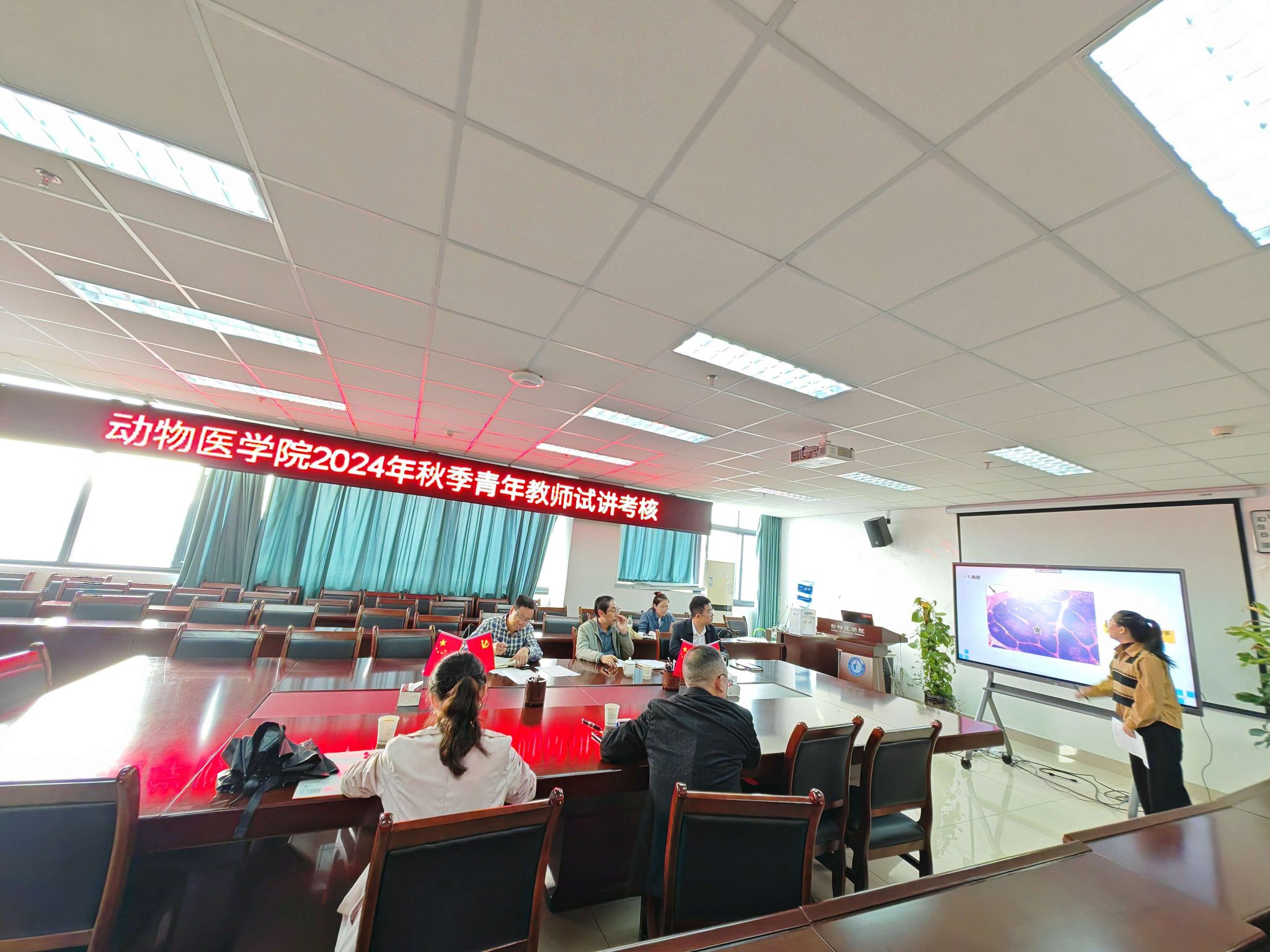 按照试讲考核要求,考核组随机抽取讲授课程的一个教学章节内容进行讲授,评为分别从教学态度,教学内容,教学方法,语言表达等环节进行打分和一一点评。孙迪试讲了课程《兽医实验室生物安全》的“第三章第一节实验动物安全”,朱沿秋课程《动物组织与胚胎学实验》的“第三章第一节 胸腺、淋巴结、脾脏”的部分内容。两位青年教师积极准备,以饱满的热情、较为生动的教学方法完成了试讲。评委们分别从教学内容的深度与广度、课程思政的巧妙融入、教态教法的自然得体、教学设计的科学合理以及教学方法的灵活多样等方面进行了全方位的细致指导。大家一致认为,两位青年教师总体教学效果良好,展现了动医人的教学风采;同时建议进一步加强课程间、章节间知识点的联系,突出重点,以及注重教学内容的逻辑,做到层层深入、循序渐进,从而更好地提高学生的学习兴趣,并潜移默化地将课程思政引入课堂教学之中。