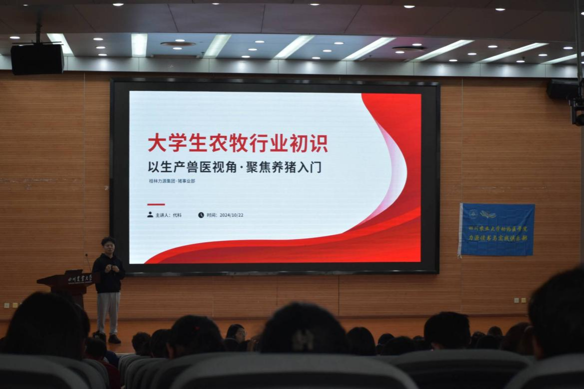 此外,川农优秀校友、桂林力源集团猪事业部种猪方向猪群健康管理部疾病线负责人、预防兽医学博士代科,结合自身经历向动医学子深入剖析了农牧行业发展现状,并分享了行业认知、职业规划的相关问题,带领动医学子了解了动物医学就业一线的挑战和机遇。最后,代科寄语:“选择大于努力,但选择的前提始终是努力,是多年积累筑成的敲门砖。”